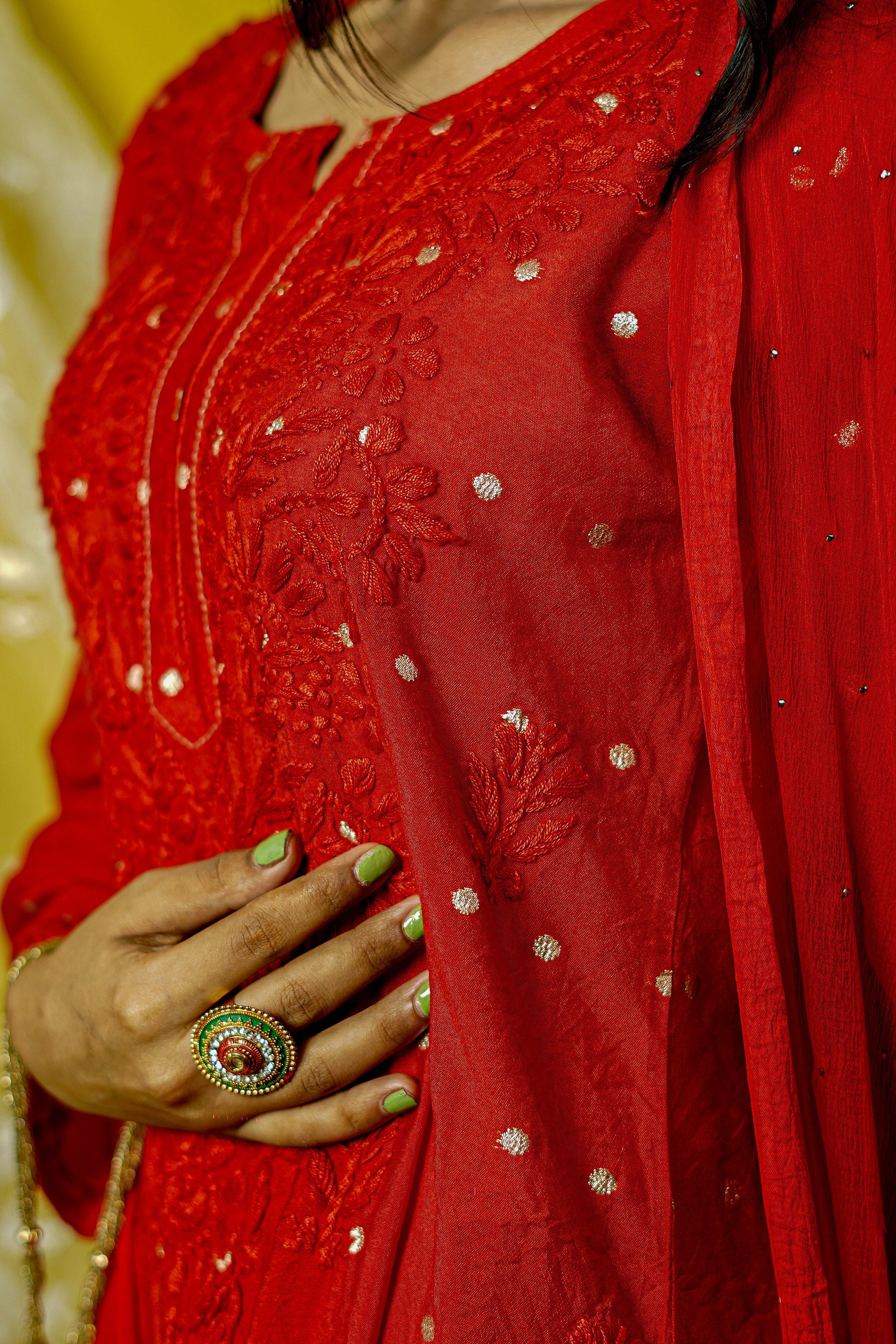 • Embroidery: Handcrafted Chikankari with Ghaas patti, Bakhiya, Phanda and Pechni as main stitches