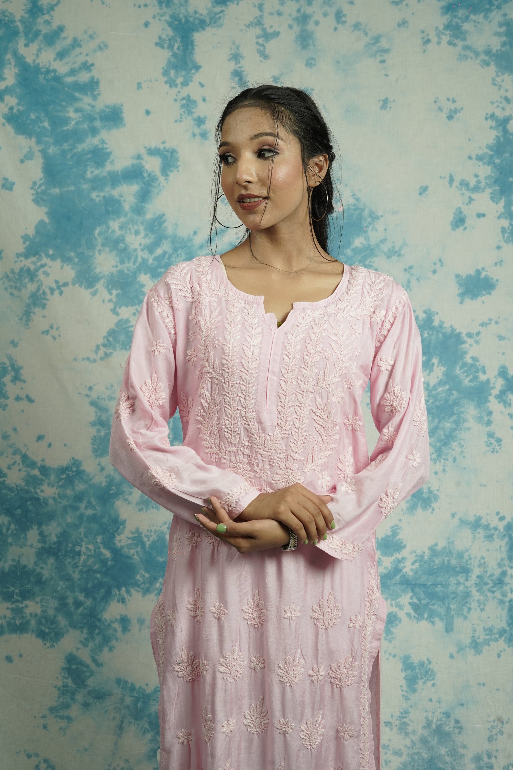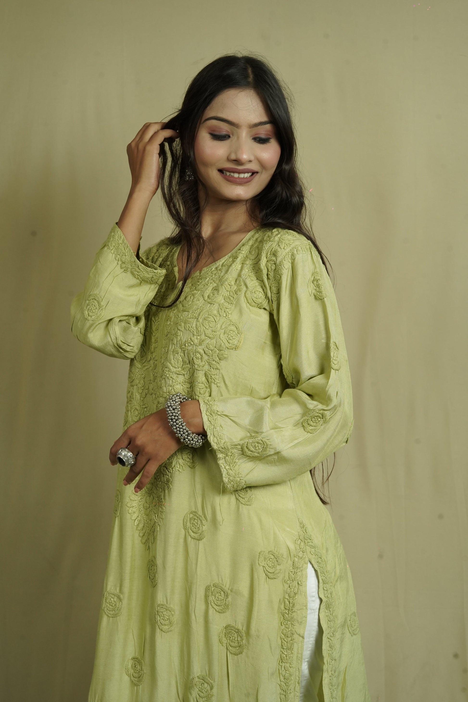 Muslin Silk Long Chikankari Kurti