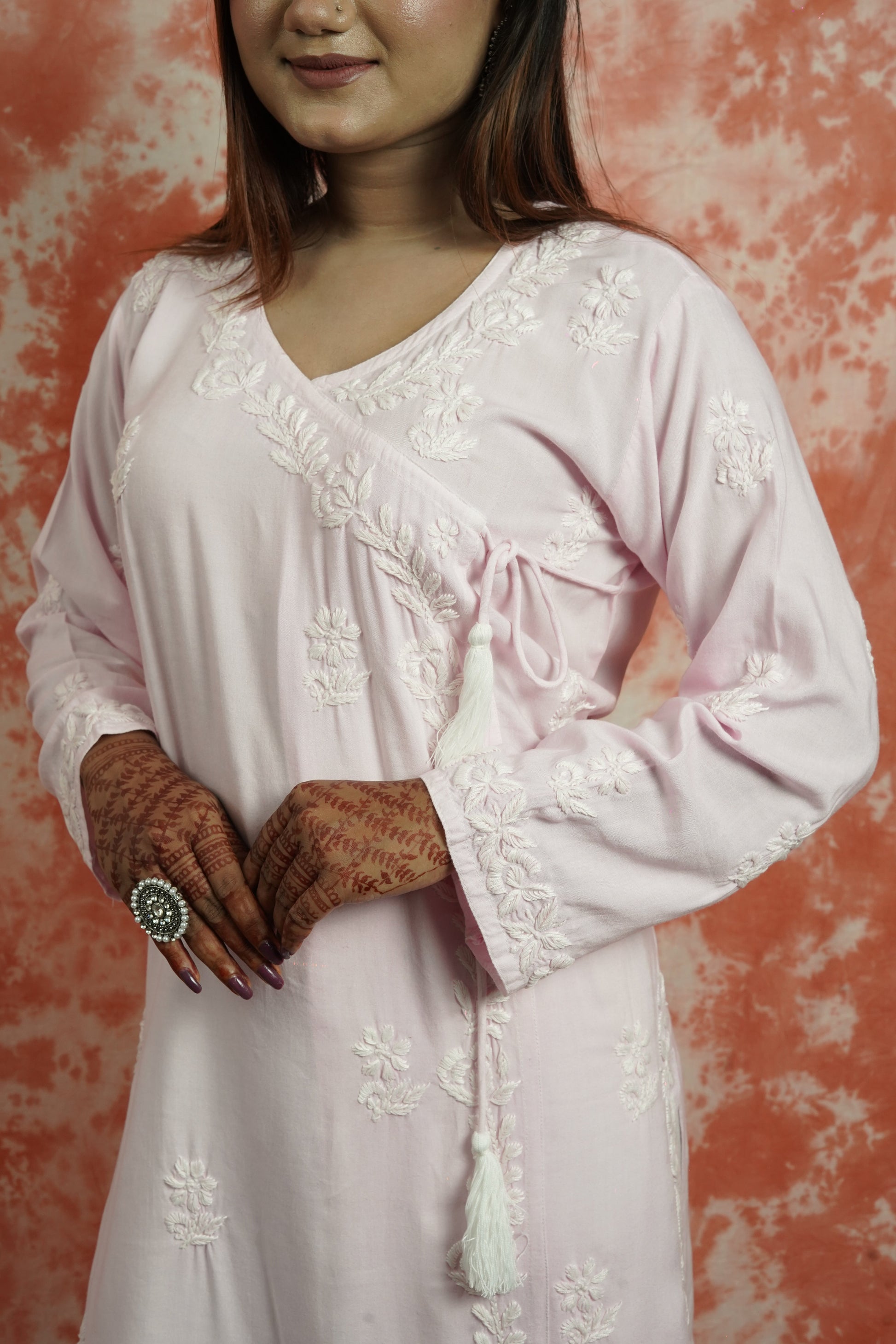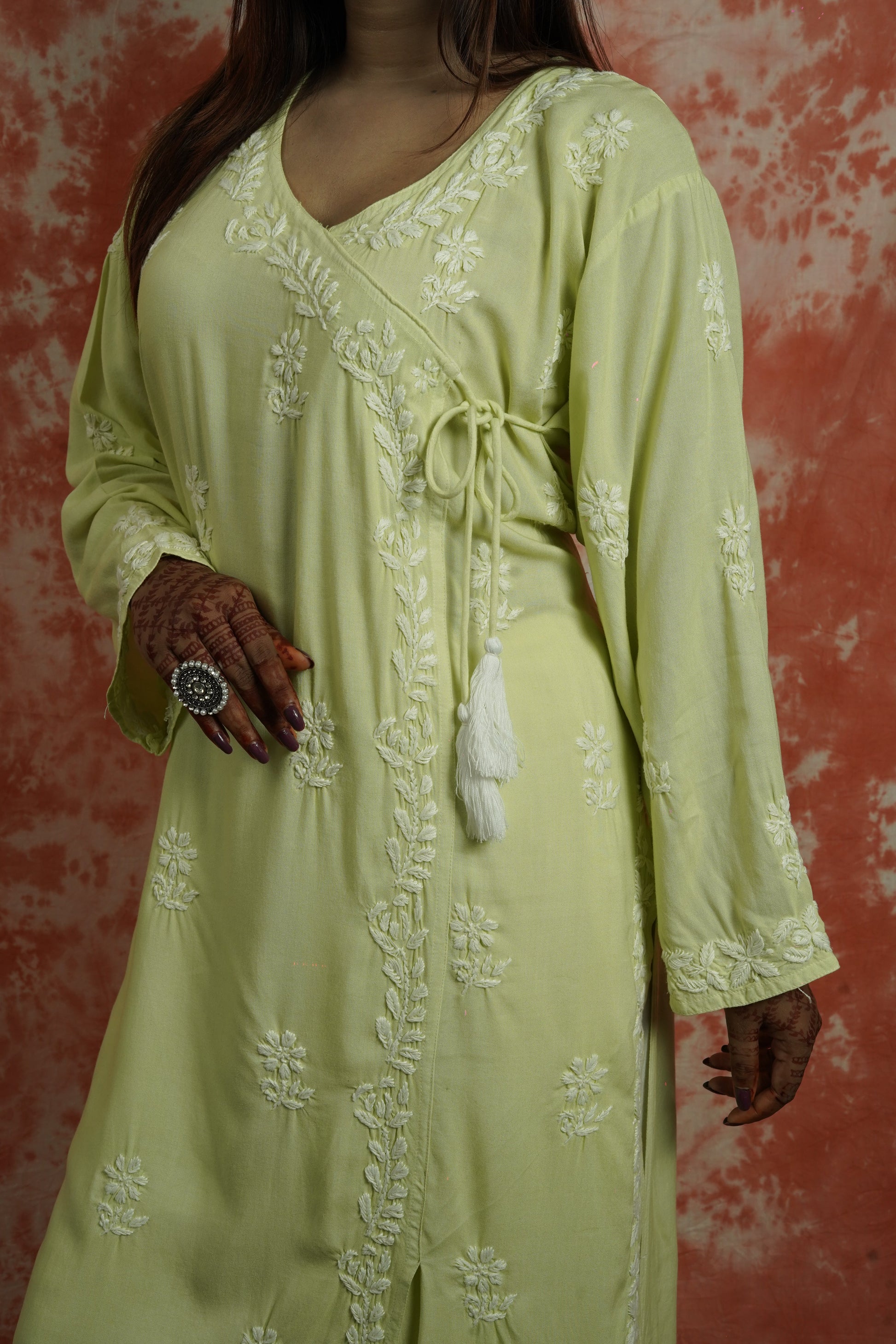 • Embroidery: Handcrafted Chikankari with Ghaas Patti, Bakhiya, Phanda & Pechni stitches